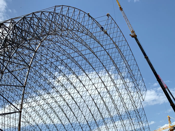 (2)网架加工前应对现场尺寸进行复测,确认无误后方可进行加工、安装;网架制作、运输、安装应遵守《空间网格结构技术规程》JGJ7-2010、《钢网架丰县螺栓球节点》JG/T 10-2009、《钢网架丰县螺栓球节点用高强度螺栓》 GB/T 16939-2016、《丰县钢结构丰县工程丰县施工规范》 GB50755-2012、《丰县钢结构丰县工程施工质量验收标准》 GB50205-2020。